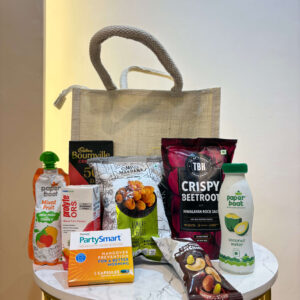 The Ultimate 'Ready-to-Enjoy' Room Hamper: We pair revitalizing essentials like Coconut Water and ORS with guilt-free, healthy snacks (Makhana, Dry Fruits) and just the right touch of classic comfort food. It's the only hamper that truly caters to a guest's every need—from post-travel hydration to a late-night treat.