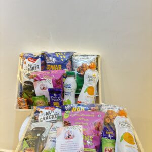 Curated for All Ages: A balanced mix of snacks and drinks that appeals to kids, youngsters, and elders alike—making it a versatile hotel room hamper.