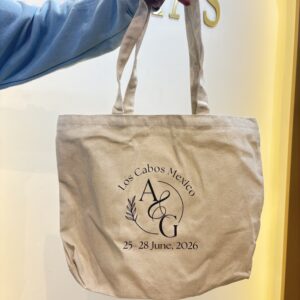 Vivid Custom Printing: High-quality, edge-to-edge printing on the tote bag allows for elaborate wedding monograms, itineraries, or floral themes that match your wedding décor.