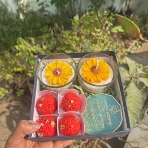 Haldi favor Bespoke Haldi Ceremony Favor: Handcrafted Tray with Scented Candles & Wax Sachet