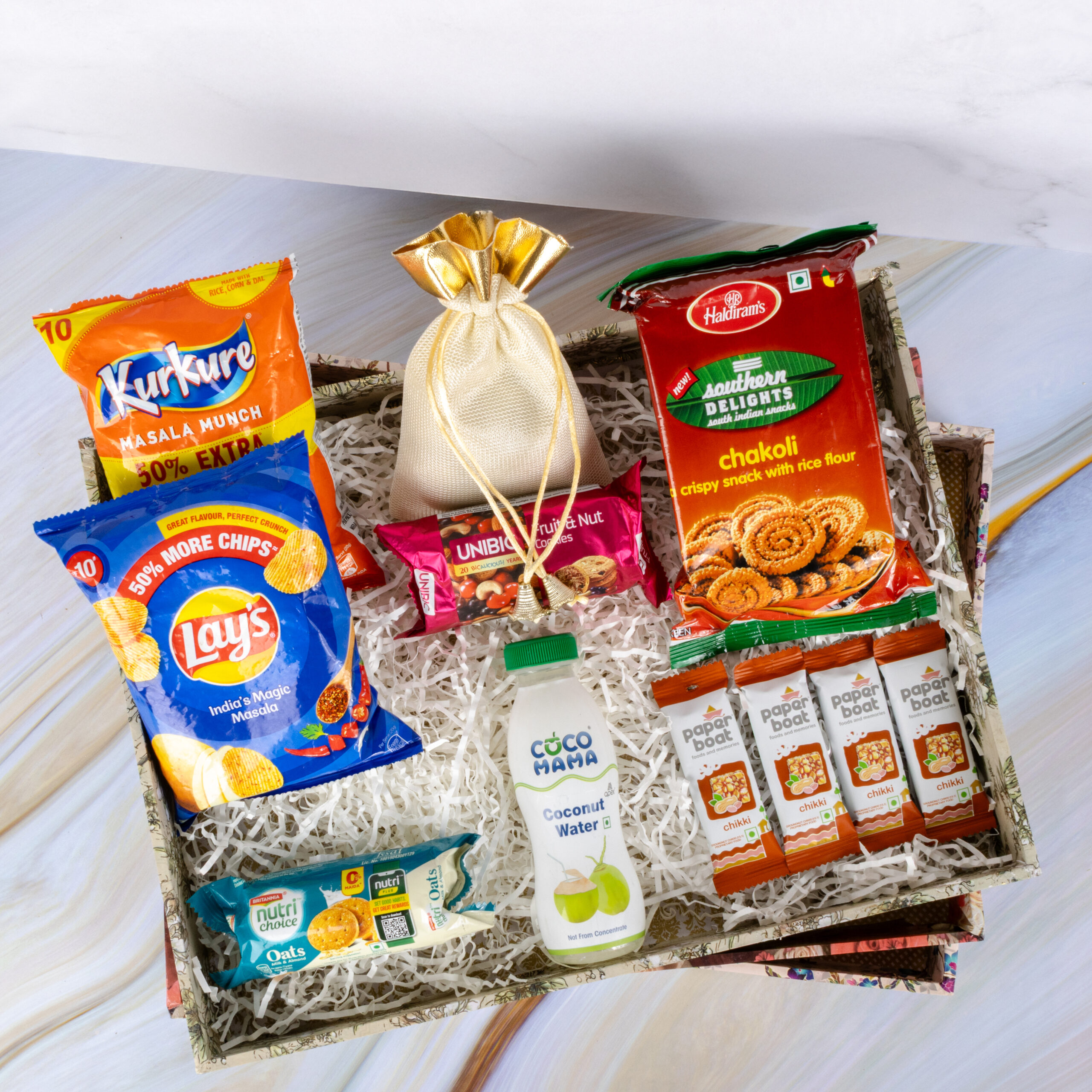 Bring a splash of colour and utility to your serving experience with the Ehsaas Assorted Printed Tray. Each tray is crafted from high-quality MDF and finished with lively, artistic prints – making it not just a functional server but a conversation starter. The generous 10×16 size offers ample space for beverages, snacks, or gifting arrangements, while the sturdy build ensures durability and ease of handling. Perfect for festive gifting, hospitality hampers, or simply elevating your everyday table setting, these trays blend practicality with aesthetic appeal.